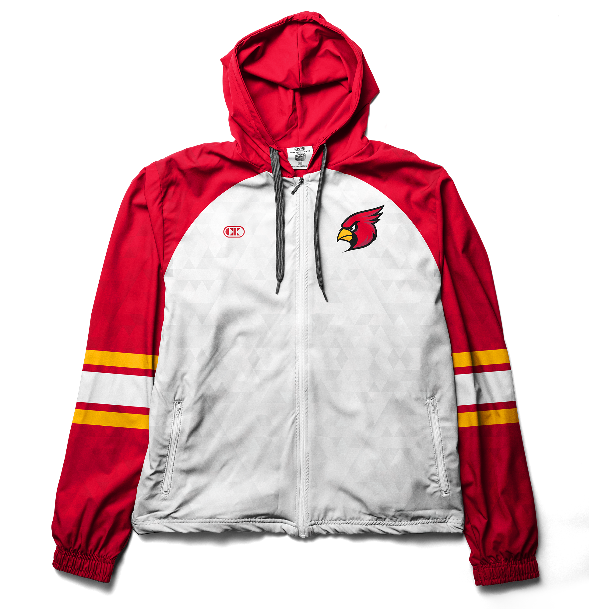 The Pinnacle warm-up jacket by Cliff Keen is built to withstand pre-match warmup while still making a stylish statement on the podium. Elevate your team or club's look with the Pinnacle pull-string hooded jacket by Cliff Keen today!