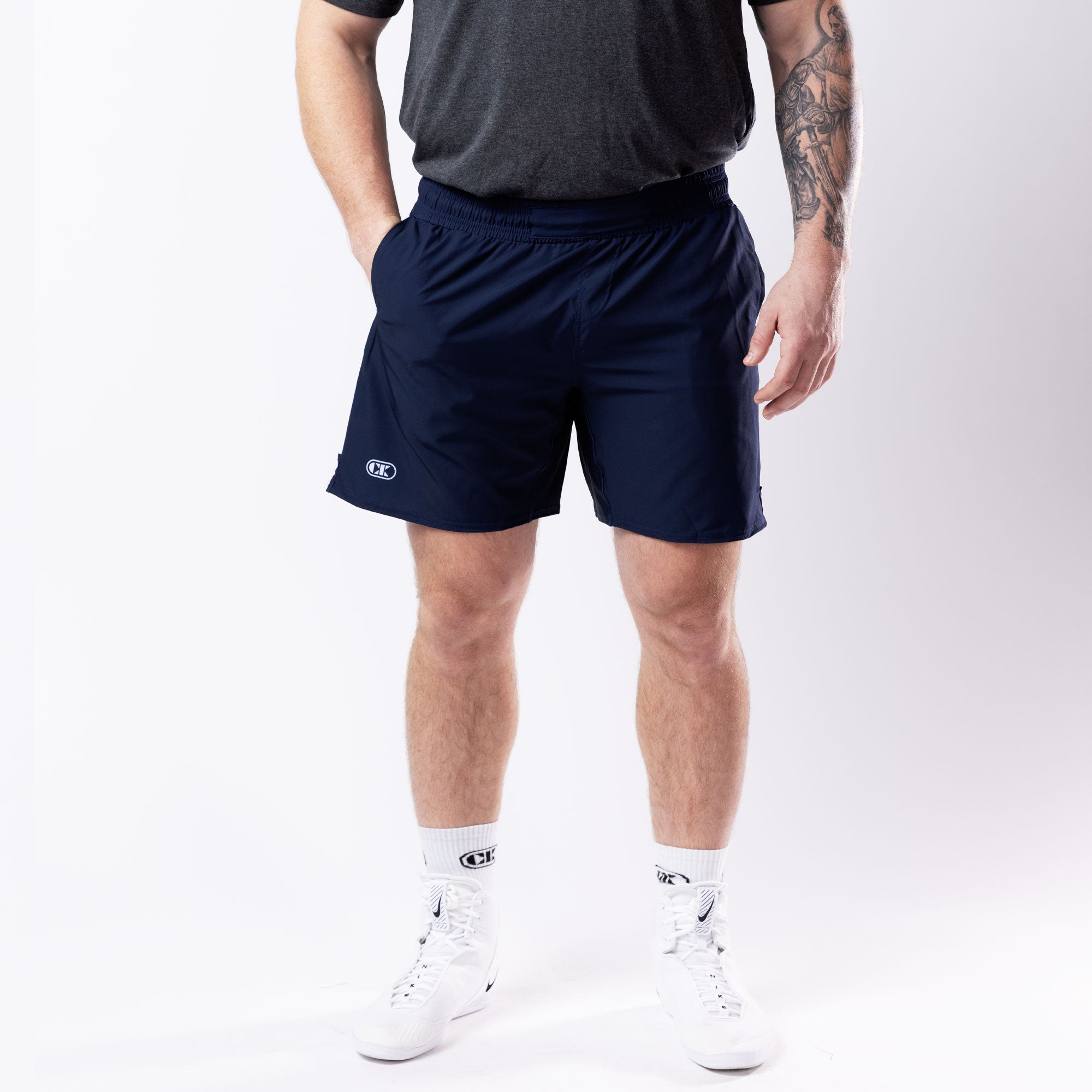 Crafted with a rugged, mat-tested outer shell and a stretch Lycra crotch panel, they move with you through shots, sprawls, and scrambles without giving up an ounce of strength. Whether you’re drilling, lifting, or heading to the venue, they stay dialed-in and functional — so you don’t have to change just to check your phone or leave the gym.